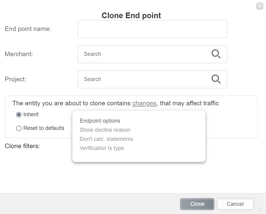 In order to see which changes for this endpoint will be cloned, press changes button.