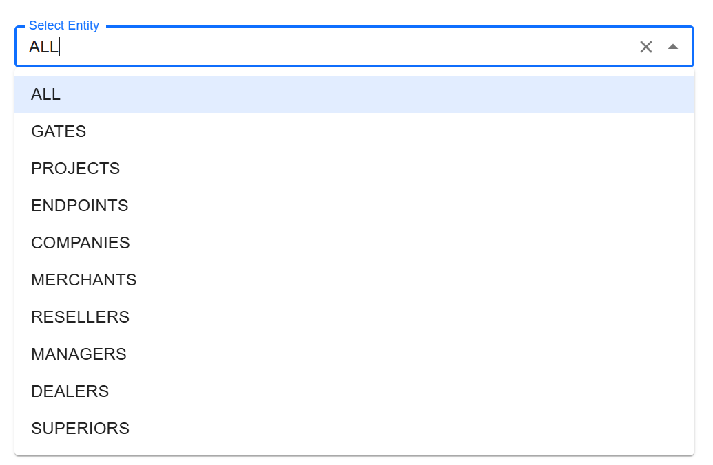 The screen is designed to find projects, endpoints and other entities by their name or ID and is located in “Settings” – “Settings Search” section.