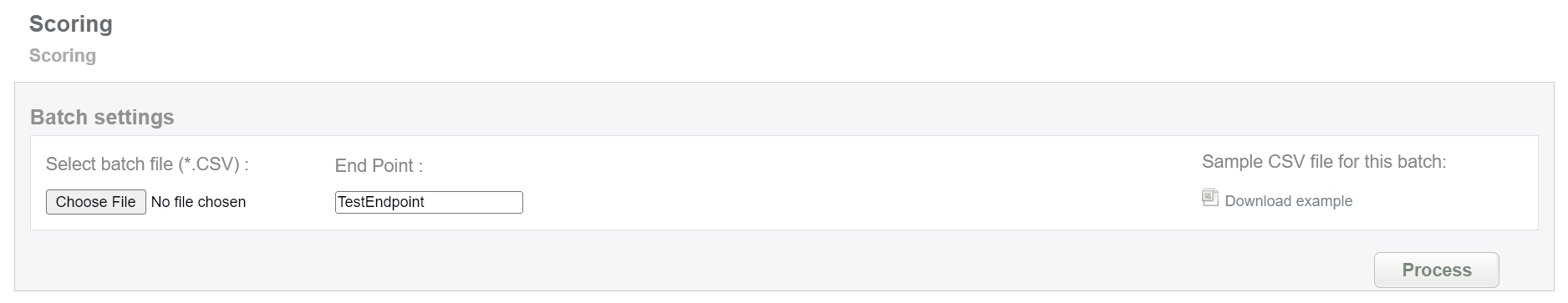 This batch allows to get information about card scoring. Collect order IDs and needed card data, assigned by Plytech system and enter all information to the CSV file and upload it to receive card scoring information. An example of CSV file for upload is available on the same screen.