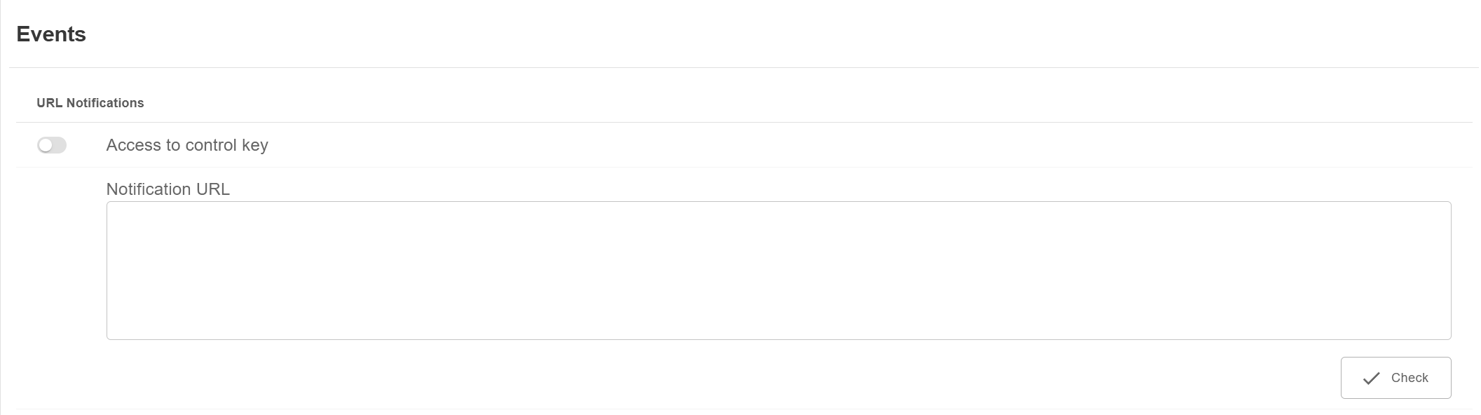 “Access to control key” event sends notification to the specified URL about viewing of the merchant control key by any user of the system.