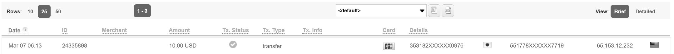 allows you to display all transactions for a specific merchant or multiple merchants; |