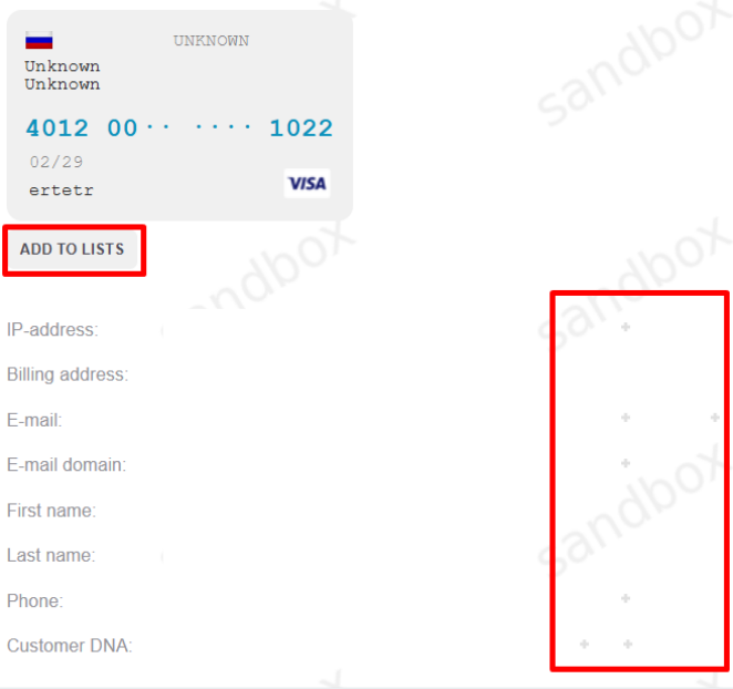 allows to view transactions with a specific type of cards and payment methods; |